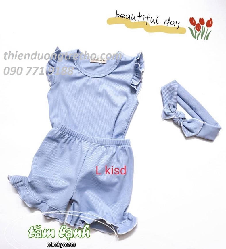 Tay sát nách viền cánh tiên và quần viền gợn tinh xảo, xắc nét