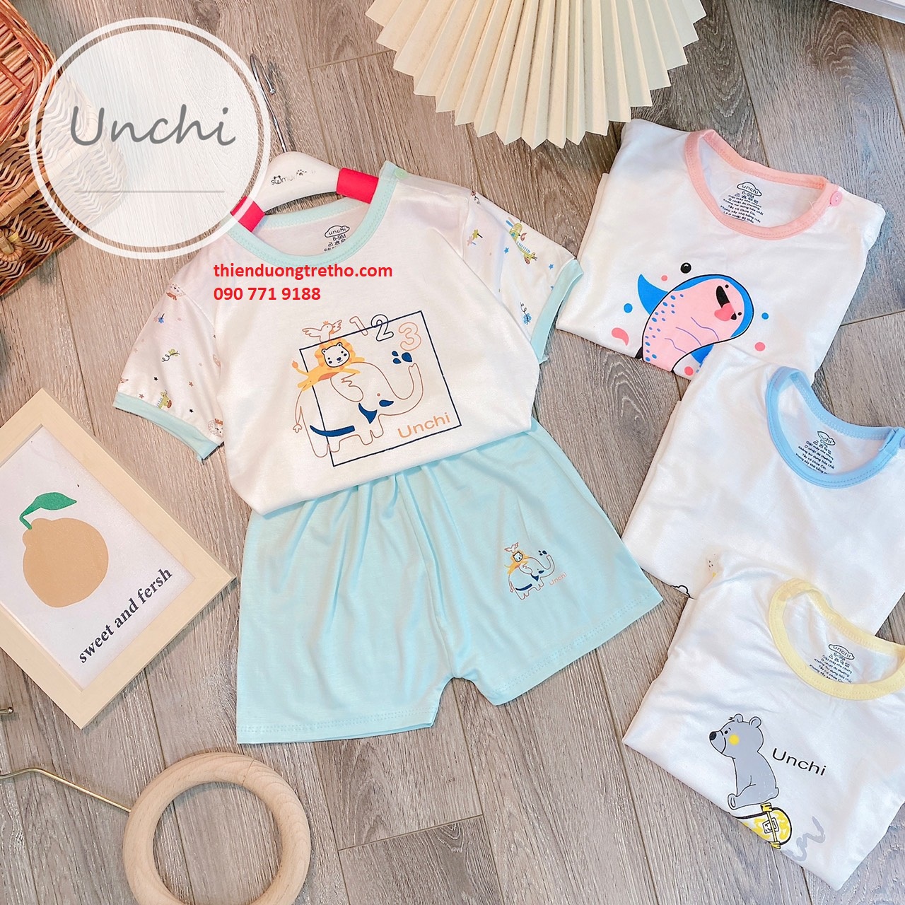 Bộ Unchi Ngắn Cài Vai Tay In Rơi 3-24 Tháng