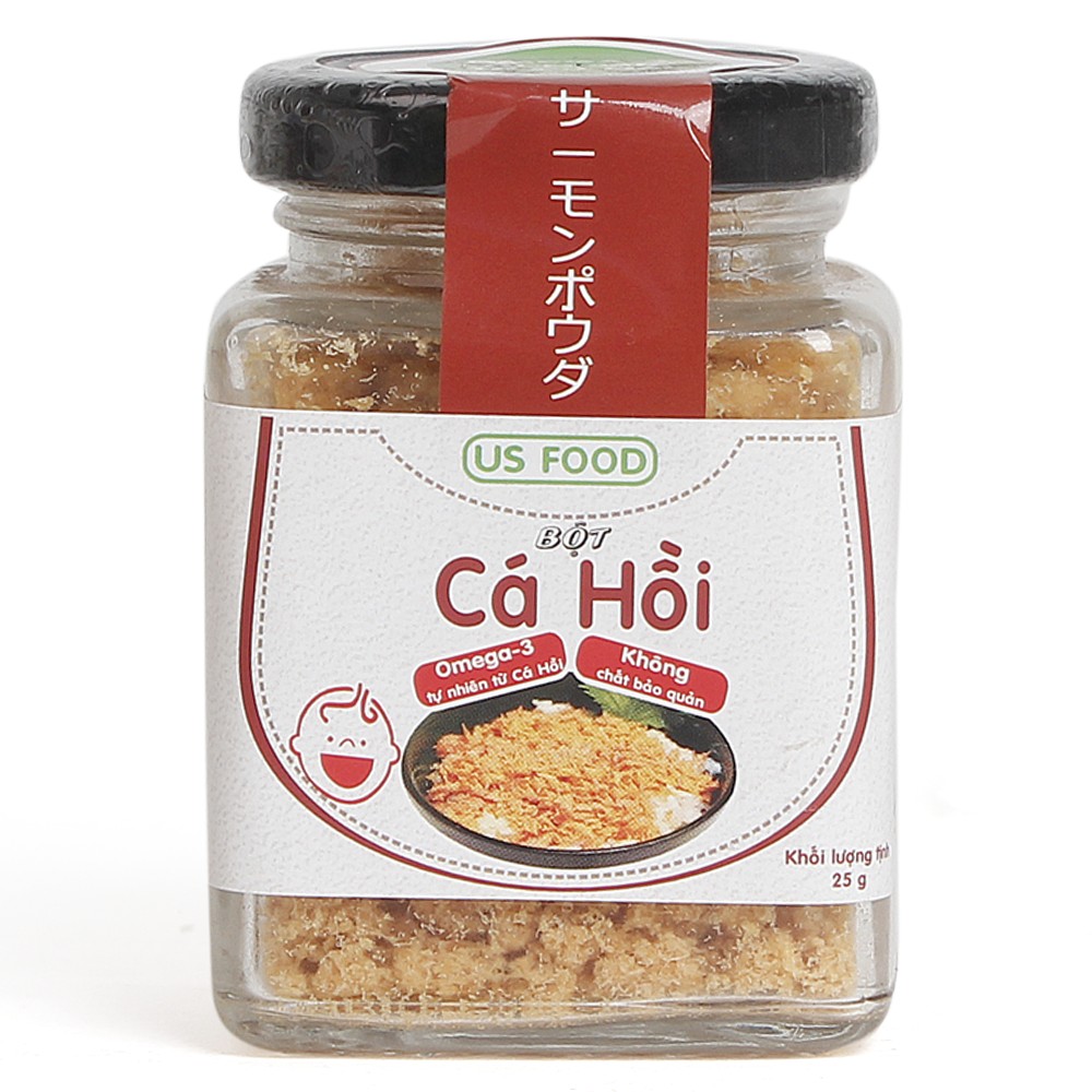 - Bột cá hồi US Food 25g được chế biến từ thịt cá hồi giúp cung cấp các chất dinh dưỡng cần thiết cho trẻ nhỏ đặc biệt là axit Omega3 giúp bé phát triển trí não, DHA có trong cá hồi đóng vai trò quan trọng trong quá trình sinh trưởng của tế bào não và hệ thần kinh giúp bé phát triển nhanh và cao lớn, thông minh.
