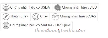 - Chứng nhận hữu cơ  USDA, EU, JAS, China, Korea, Thailand.