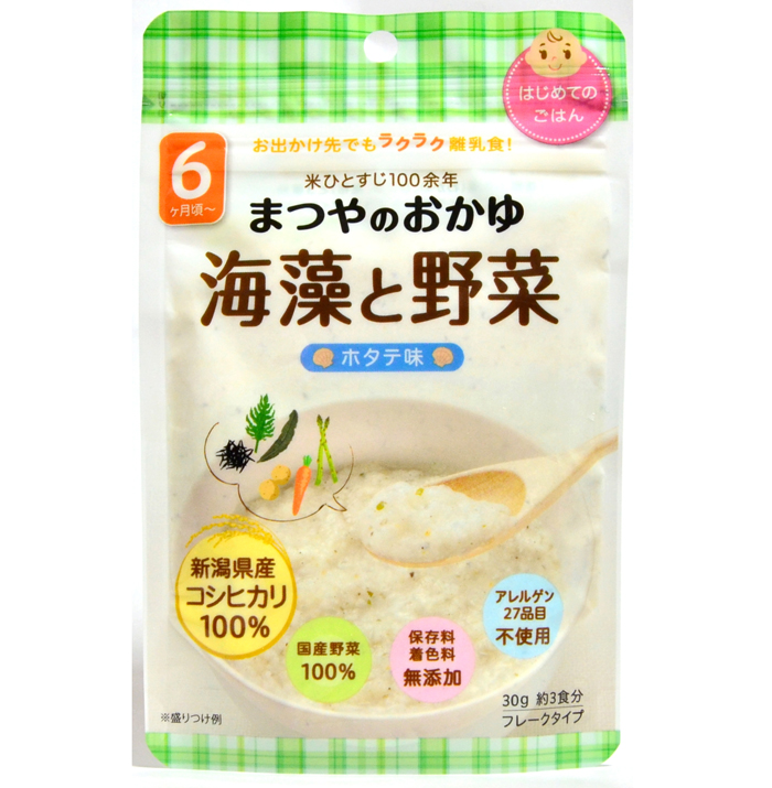 Cháo ăn dặm gạo Koshihikari, rau, rong biển, sò điệp Matsuya (6m+) được chế biến từ các nguyên liệu cao cấp, dạng cốm, dễ hòa tan trong nước, giúp trẻ dễ nhai nuốt, tiêu hóa tốt. Hương vị thơm ngon, kích thích bé ăn uống, giúp cung cấp canxi, chất dinh dưỡng, năng lượng, vitamin cho trẻ khi bắt đầu ăn dặm.