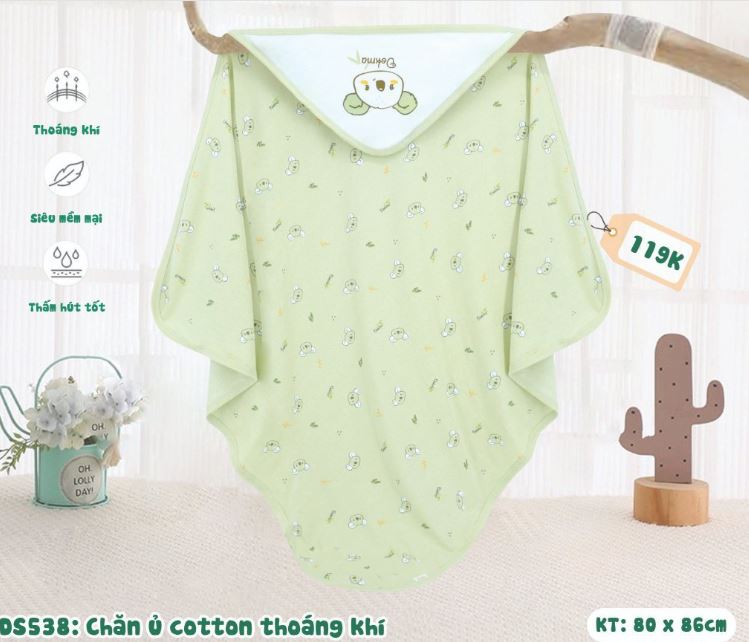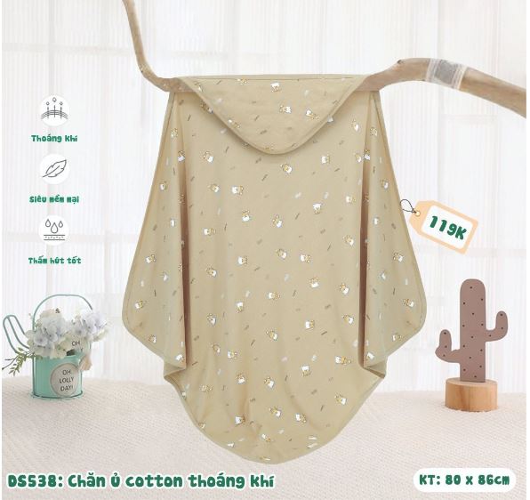 - Choàng ủ cotton được làm từ chất liệu cvải sợi tre bamboo thoáng khí cao cấp, mang lại cảm giác mềm mại, thoáng khí và tuyệt đối an toàn khi sử dụng cho bé yêu của bạn. Bề mặt sản phẩm mịn màng, không bung sổ gây khó chịu hay kích ứng đối với làn da nhạy cảm của bé.