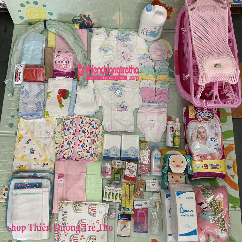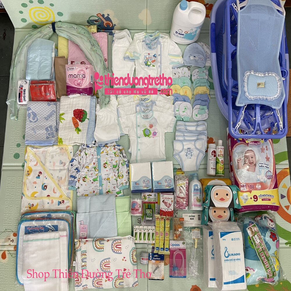Set đồ sơ sinh trọn gói với các đồ dùng cần thiết cho mẹ khi đi sinh.