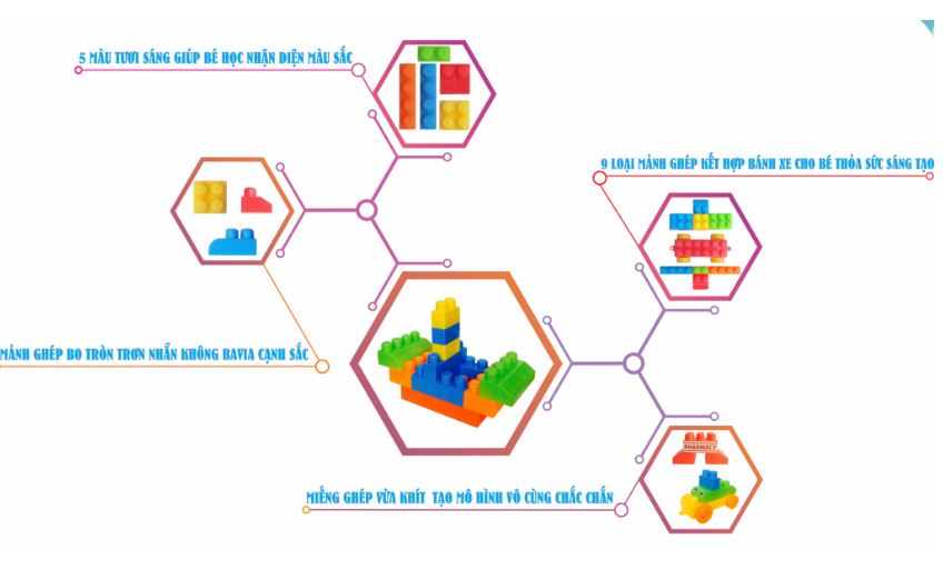 - Giúp bé nhận biết và phân biệt hình khối, màu sắc