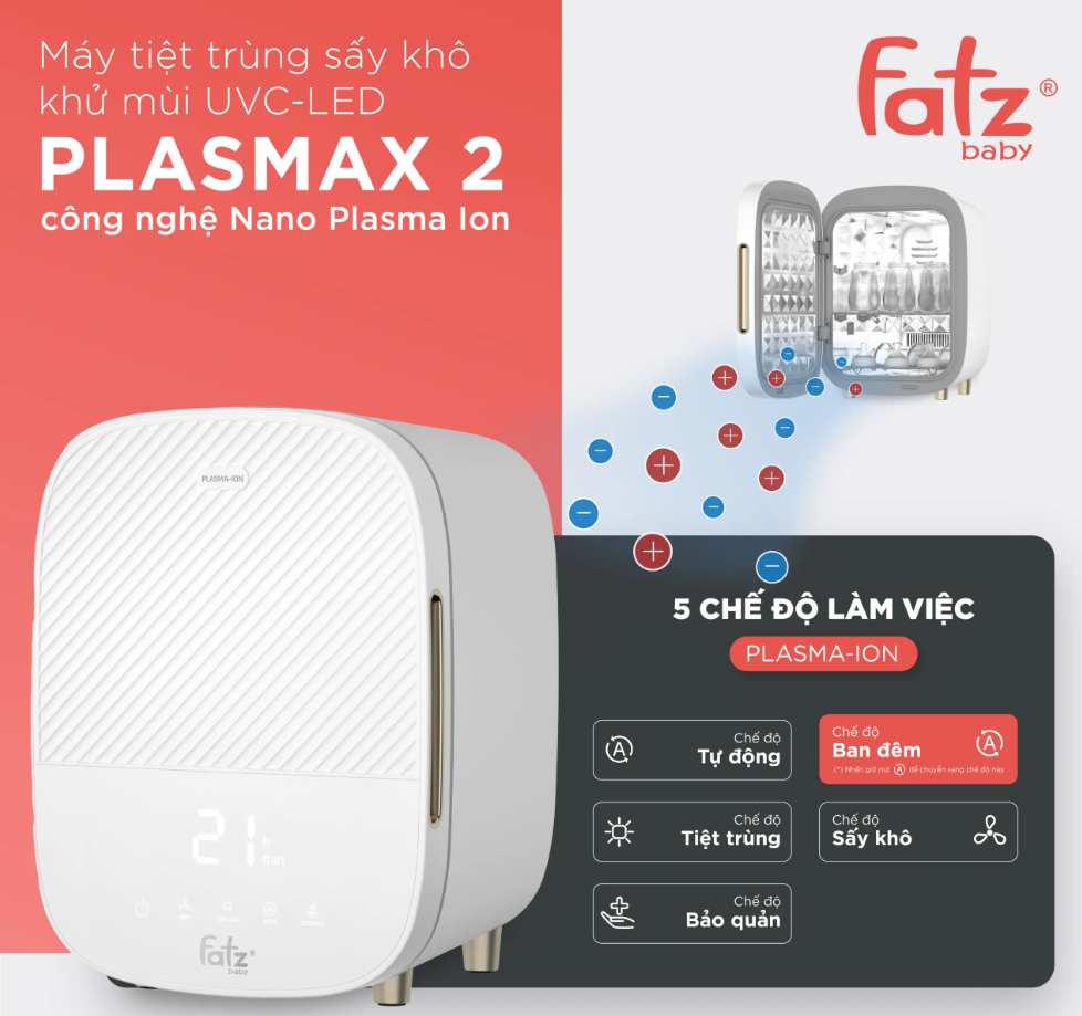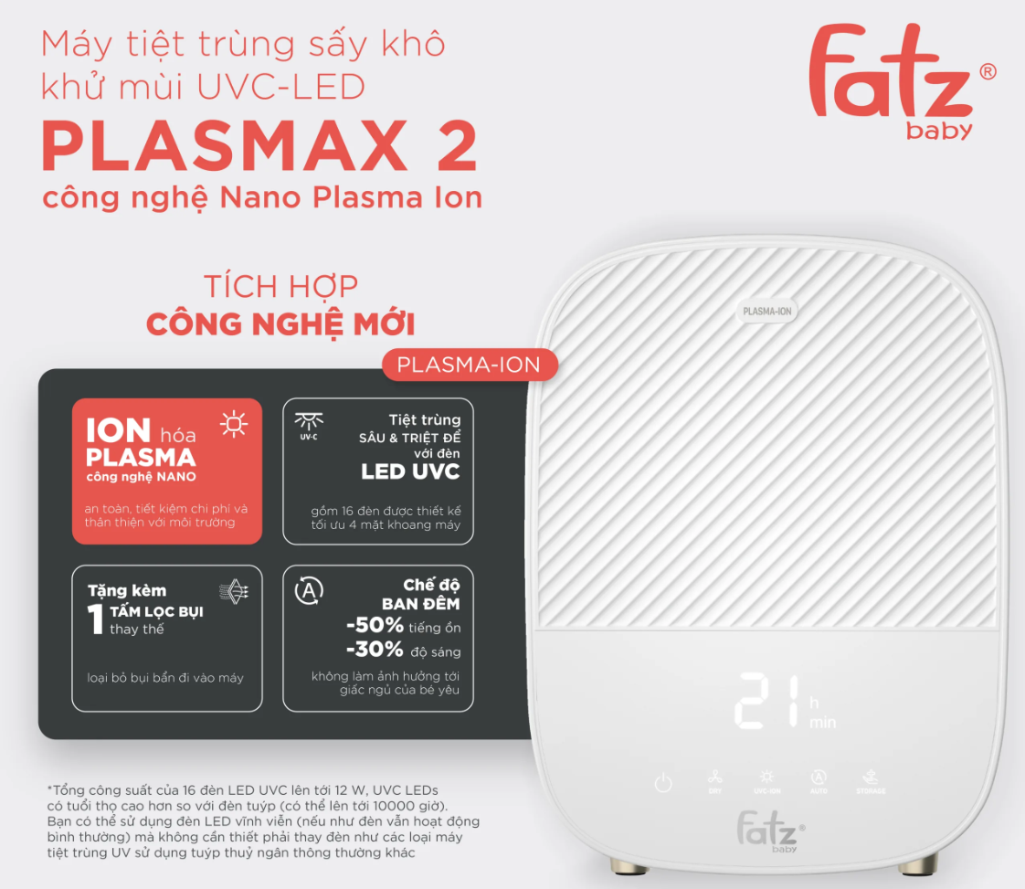 - Chức năng Plasma Ion được thêm vào 5 phút cuối của chế độ Sấy khô để khử mùi, cùng với chế độ tiệt trùng UVC.