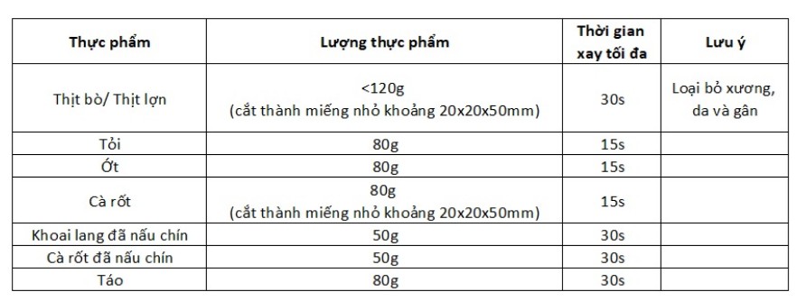 Xay tối đa 30 giây mỗi lần, nghỉ ít nhất 2 phút giữa các lần.