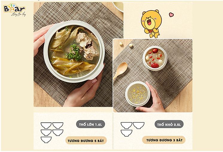 Nồi nấu chậm 1.6l Bear với thiết kế nhỏ gọn tích hợp lồng hấp xinh xắn và tiện lợi, đã trở thành một trong những mặt hàng “quốc dân” được tin dùng tại Việt Nam và thế giới. Bear DDZ-D16J3 xứng đáng là sản phẩm nhà bếp thế hệ mới bắt kịp xu hướng đồ gia dụng nhà bếp hiện đại, vừa đảm bảo các tính năng nấu ăn hấp hầm/nấu cháo cho bé, vừa đảm bảo tính thẩm mỹ cho căn bếp gia đình bạn.