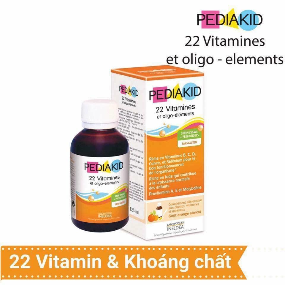 Pediakid Bổ Sung 22 vitamins cung cấp 22 Vitamin và các nguyên tố vi lượng được tinh chế đặc biệt từ thảo dược dành cho trẻ em trong giai đoạn tăng trưởng phát triển cho tới khi trưởng thành nhằm bổ xung hàng ngày các Vitamin và các nguyên tố vi lượng giúp đạt hiệu quả tối ưu cho sự phát triển và tạo lập cân bằng, lâu dài bền vững trong suốt quá trình phát triển của trẻ.