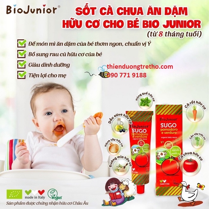 Sốt cà chua Bio Junior với các loại rau củ, là loại thực phẩm ăn dặm hữu cơ cùng với các loại mì, nui bổ dưỡng cho bé yêu.