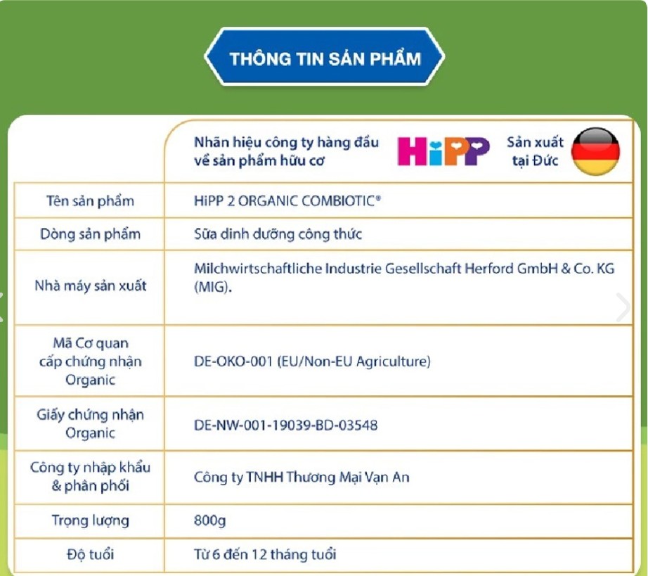 Sữa HiPP Organic Combiotic số 2 là sữa công thức đặc chế dành cho trẻ từ 6-12 tháng.
