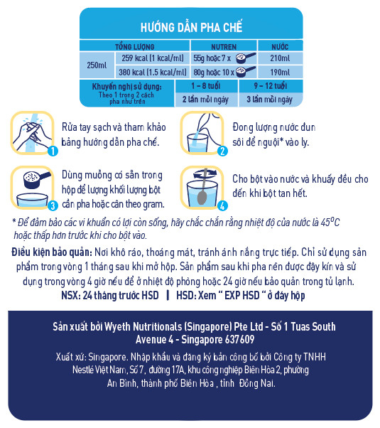 - Sữa bột Nutren sản xuất tại Singapore, đảm bảo an toàn, chất lượng.