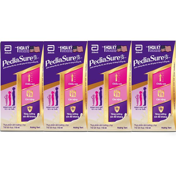 Sữa nước hương Vani Abbott PediaSure cho Trẻ 1-10 Tuổi 110ml (Lốc/4 Hộp) giúp trẻ tăng chiều cao, cân nặng và sức đề kháng.