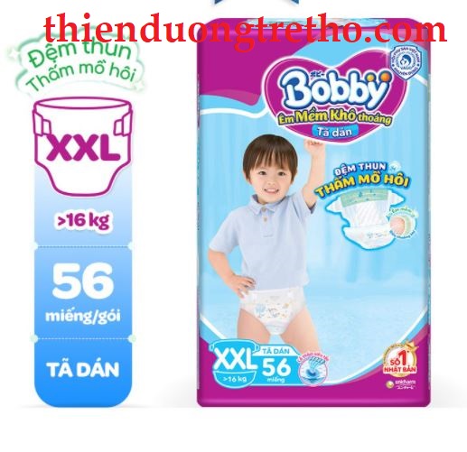 Tã Dán Bobby Size XXL 56 Miếng Mẫu Mới đệm thun thấm mồ hôi cho Bé >16kg