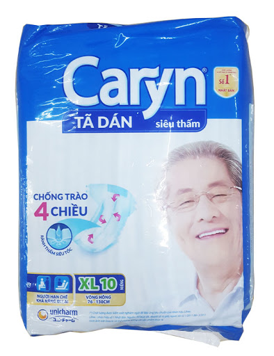 Với những người lớn tuổi hoặc những người không thể kiểm soát vấn đề vệ sinh, gặp khó khăn trong quá trình bài tiết thì tã dáN Caryn Cho Mẹ là một sản phẩm rất cần thiết. Caryn M/L10 có cấu tạo màng đáy Air-Active dạng vải, mềm mại, giúp da hô hấp với không khí tự nhiên. Đặc biệt, khi tã thấm hút nhiều, lớp mực in sẽ mờ dần để báo hiệu đến lúc phải thay tã mà không cần phải mở tã để kiểm tra, rất tiện lợi và dễ sử dụng.
