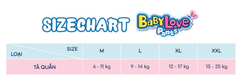 Hướng dẫn chon size tã quần Baby Love