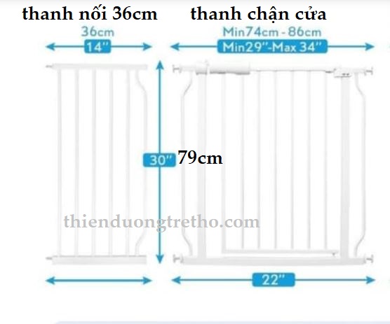 Thanh nối dài cho bộ chắn cửa, cầu thang giúp nối dài thêm thanh chắn cửa khi trường hợp khoảng cách cần chắn có kích thước lớn hơn bộ cửa chắn là 85cm