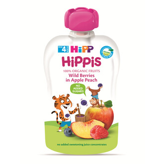 Trái Cây Nghiền Hữu Cơ Hippis Dâu Rừng, Đào, Táo 100g dành cho trẻ từ 4 tháng tuổi trở lên, là sản phẩm là thức ăn dặm bổ sung hoa quả trong chế độ ăn hàng ngày của trẻ nhỏ.