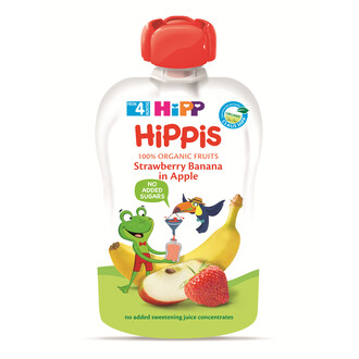 Trái Cây Nghiền Hữu Cơ Hippis Dâu Tây, Chuối, Táo 100G dành cho trẻ từ 4 tháng tuổi trở lên, là sản phẩm là thức ăn dặm bổ sung hoa quả trong chế độ ăn hàng ngày của trẻ nhỏ.