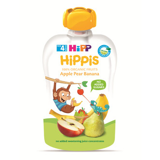 Trái Cây Nghiền Hữu Cơ Hippis Táo, Lê, Chuối 100G dành cho trẻ từ 4 tháng tuổi trở lên, là sản phẩm là thức ăn dặm bổ sung hoa quả trong chế độ ăn hàng ngày của trẻ nhỏ.