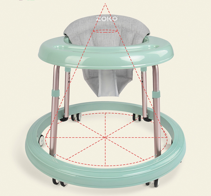 Xe tập đi Zoko có chất liệu kim loại hiện đại, thiết kế hình tròn cân đối cùng bánh xe cao su 360 độ hỗ trợ những bước đi của bé được thuận lợi và mượt mà. Bên cạnh đó, thiết kế vải kê chân giúp bé dễ dàng đứng vững trong tư thế thoải mái và hạn chế việc bé trượt đi khi bố mẹ không ở cạnh.