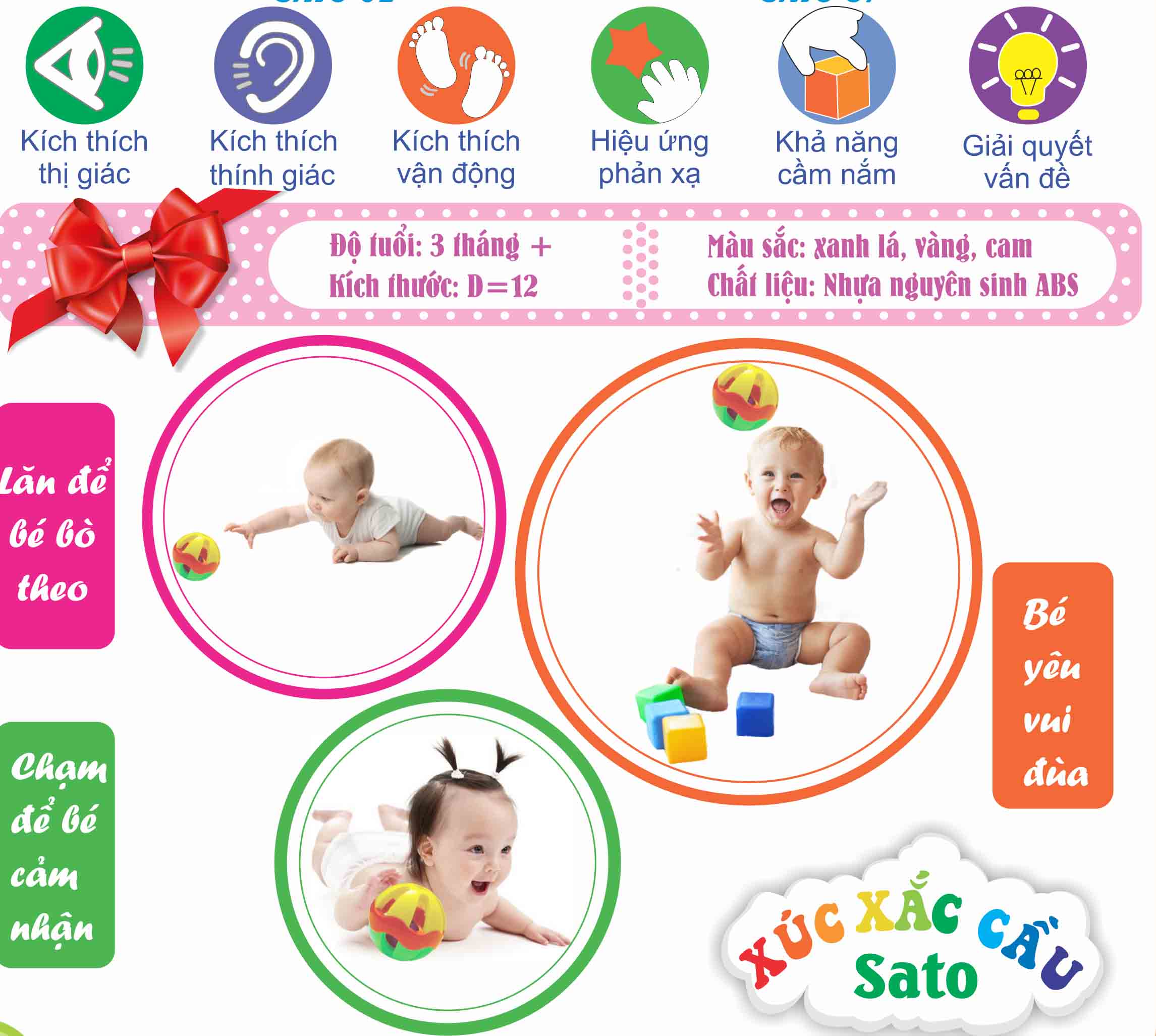 - Với bé bắt đầu tập bò, bố mẹ có thể lăn cầu để bé bò theo kích thích khả năng vận động hay bé ngồi dùng tay lăn quả cầu qua lại sẽ giúp tăng độ linh hoạt cho đôi tay của bé và kích thích thị giác. Khi bé đã biết đi, do kết cấu cầu mây có độ nảy và bền, bé có thể đá hay tung cầu mà không lo về khả năng vỡ của xúc xắc gây nguy hiểm cho bé.